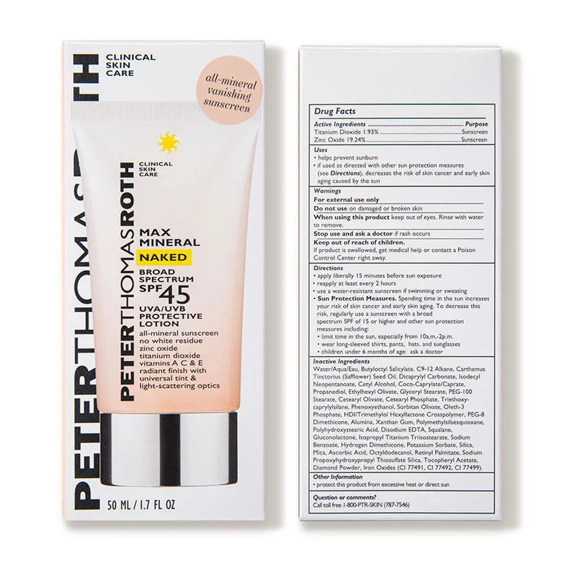 Buy Peter Thomas Roth Max Mineral Naked Broad Spectrum Spf 45 Uva Uvb Protective Lotion All Mineral Sunscreen With A Universal Tint Online In Vietnam B00yp4oel8
