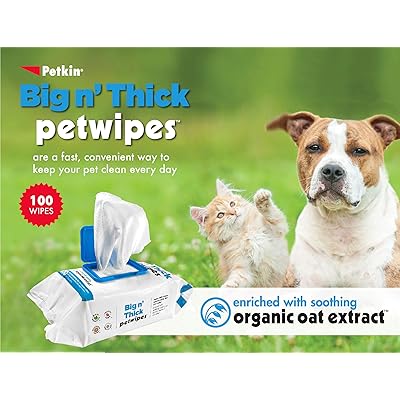 FREE Shipping on orders over 25 shipped by Amazon. Petkin Pet Wipes Big n Thick Extra Large Oatmeal Pet Wipes Cleans Face Ears Body and Eye Area Super Convenient Ideal for Home or Travel- Wipes for Pets. These heavy-duty wipes also have vitamin E and aloe to leave your companions fur and skin feeling fine.